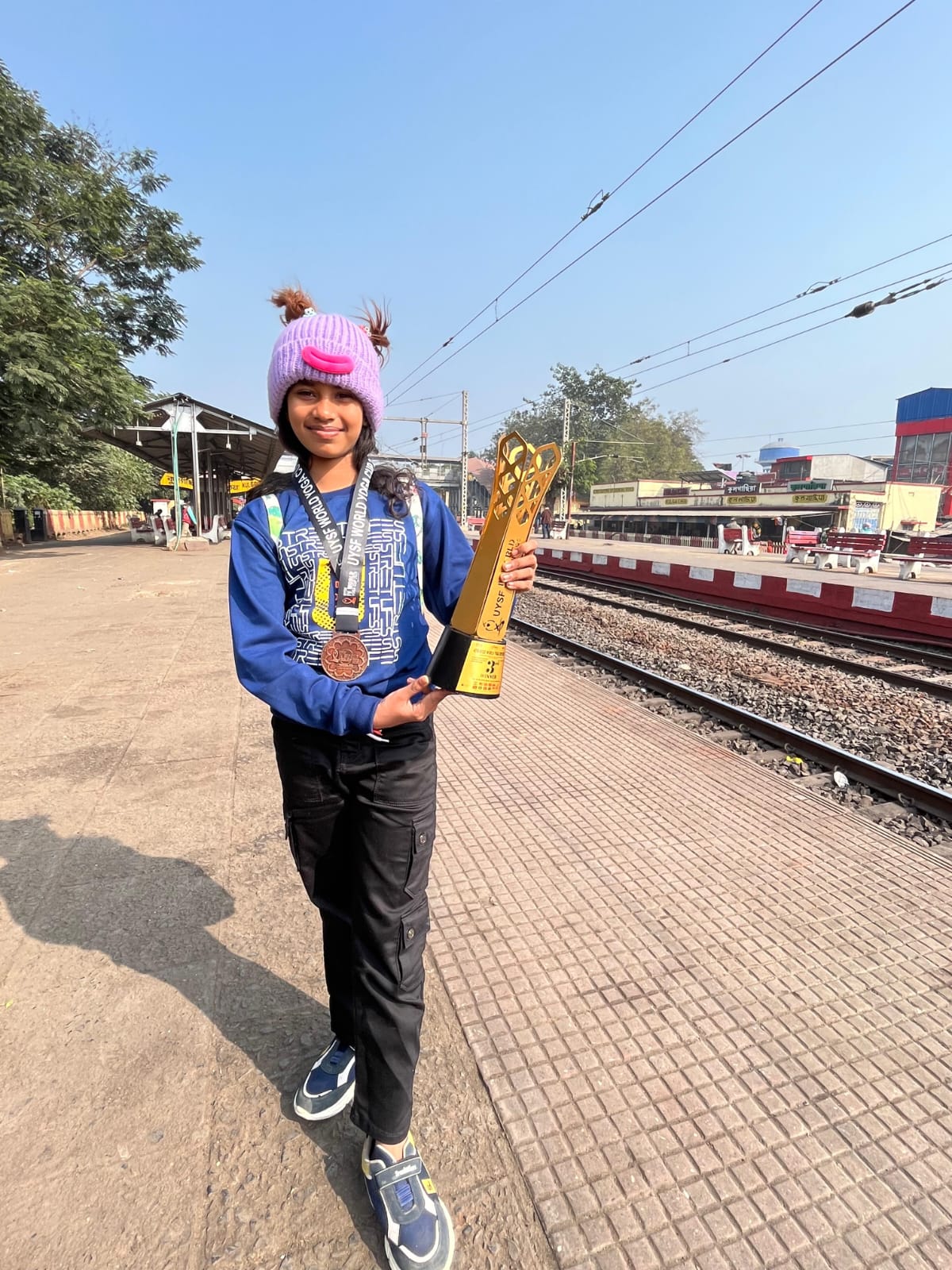 বিশ্বকাপের মঞ্চেও নাম উজ্জ্বল করলেন বাগনান যোগাচার্য আশ্রমের ছেলেমেয়েরা। গত ২৭ ডিসেম্বর দিল্লির গাজীয়াবাদে অনুষ্ঠিত হয় ইউওয়াইএসএফ ওয়ার্ল্ড কাপ ২০২৫। বিশ্বের ১৪টি দেশ থেকে প্রায় ৩০০ জন যোগা ছাত্র-ছাত্রীরা অংশগ্রহণ করেছিলেন। তাঁদের মধ্যে যোগাচার্য আশ্রমের থেকে পাঁচজন হয়েছেন চ্যাম্পিয়ন অফ দ্য চ্যাম্পিয়ন। জিতেছেন স্কুটি। ১১-১২ বছর বালিকা বিভাগে তৃতীয় হয়ে ব্রোঞ্জ জিতে নিলেন দিন দর্পণ প্রত্রিকার সাংবাদিক কল্যাণ অধিকারীর কন্যা সন্তান তমসা অধিকারী।